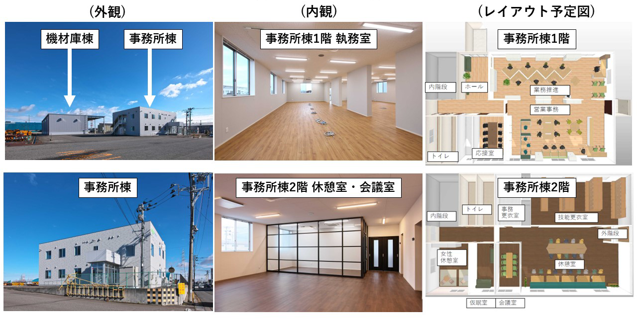 この度、新潟営業支店(支店長:猶原敏夫)は、現⾏拠点と下⽊⼾ヤードの2拠点運営による⾮効率解消を目的に下⽊⼾ヤードに事務所と機材庫を建設し、移転することといたしました。